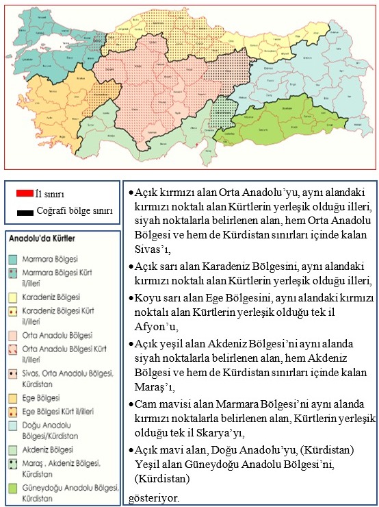 Aşağıdaki haritada Anadolu’da Kürt yerleşimi olan iller görülüyor.